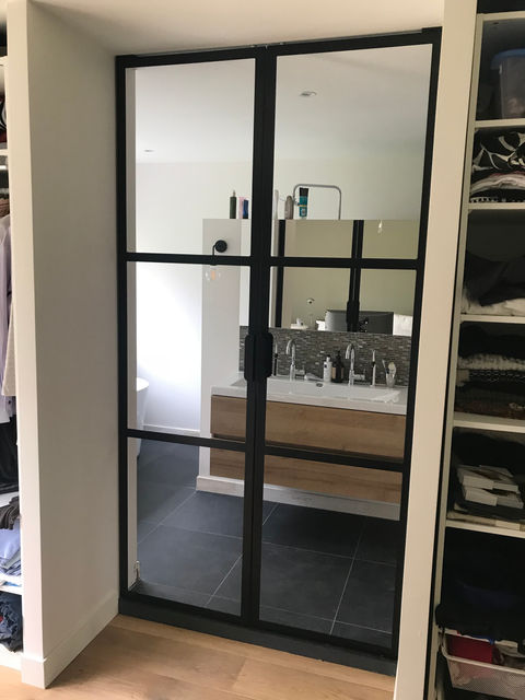 Op dit moment is het juist de trend om deze industrieel ogende deuren binnenshuis te gebruiken.